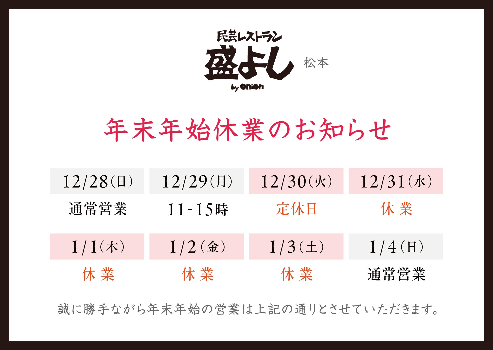 平素より、盛よし 松本店をご利用いただき誠にありがとうございます。